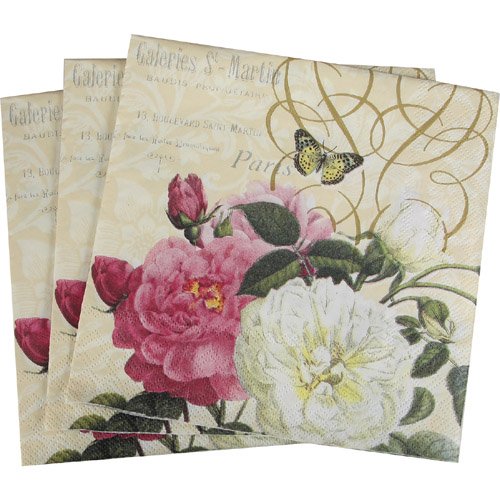 Main Features : Pink and White Roses Ephemera Luncheon Napkins