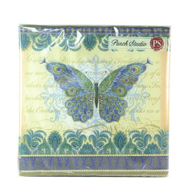 Product Description : Punch Studio Beverage Napkins- #53666 Peacock Butterfly