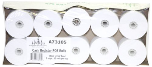 Product Description : Evergreen A73105 Paper POS Roll Restaurant Pack, Bond, 165' Length x 44 mm Width (Case of 50 Rolls)